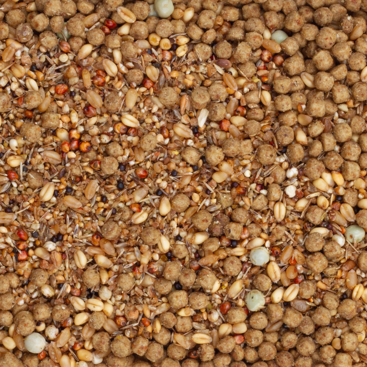 Maximal 20-25 % einer Tagesration. Auch als Lockfutter geeignet.
