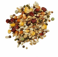Das Standard-Streufutter von GeVo. Hier achten wir in erster Linie auf einen hohen Anteil an Sonnenblumenkernen. Reich an Proteinen und hochverdaulichem Fett, eine Vielfalt an Wildsämereien sowie Muschelgrit.