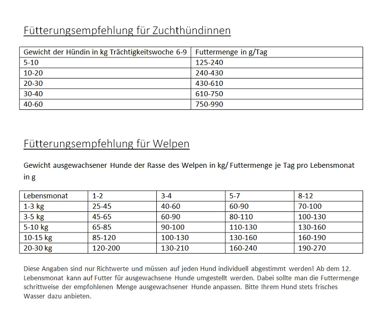 Alleinfuttermittel für Welpen und junge Hunde bis 30 kg Endgewicht, sowie für die Zuchthündinnen